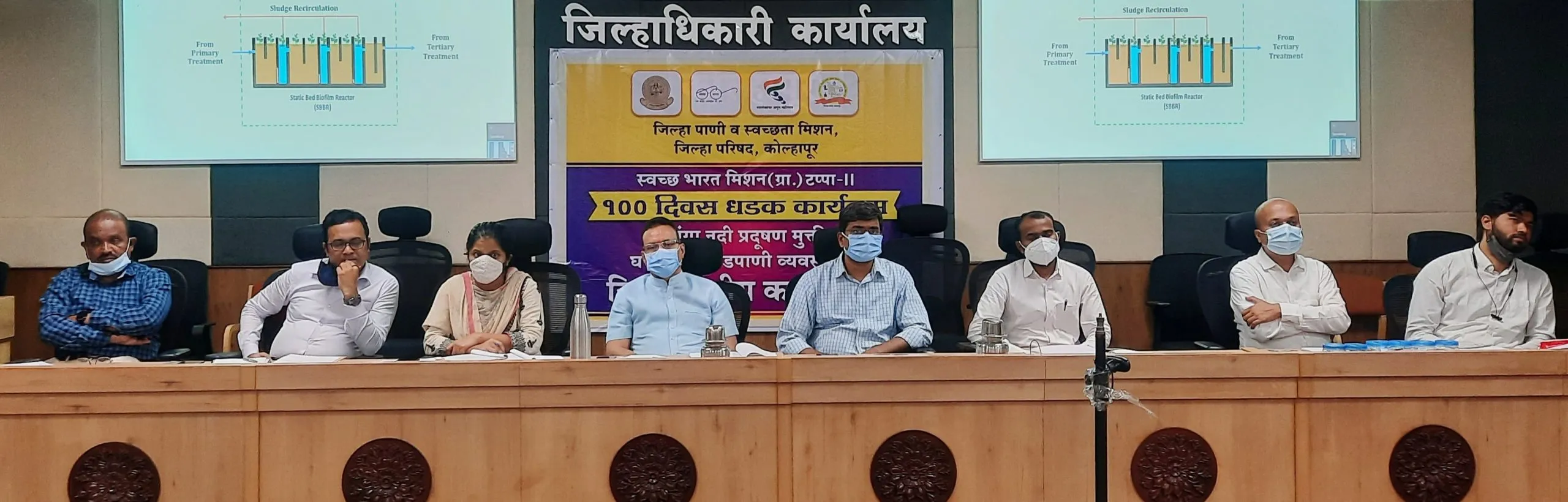 आय.आय.टी. मुंबईच्या इन्टीग्रेटेड वेटलँड टेक्नॉलॉजीव्दारे सांडपाणी प्रक्रीया प्रकल्प उभारणीबाबत जिल्हाधिकारी कार्यालयातील ताराराणी सभागृहामध्ये प्रशिक्षण घेण्यात आले. पंचगंगा प्रदूषण मुक्तीसाठी जिल्हा परिषदे अंतर्गत उपाययोजना करण्यासाठी तसेच राज्य शासनाच्या पाणी पुरवठा व स्वच्छता विभागामार्फत स्वच्छ भारतमिशन टप्पा 2 अंतर्गत 100 दिवसांच्या धडक कार्यक्रमामध्ये प्रामुख्याने घनकचरा व सांडपाणी व्यवस्थापन करणे प्रस्तावित आहे. मुंबईच्या आय.आय.टी. पथकामार्फत दुपारच्या सत्रामध्ये जिल्हास्तरावर आयोजित कार्यशाळेमध्ये इन्टीग्रेटेड वेटलँड टेक्नॉलॉजी तंत्रज्ञानाबाबत मार्गदर्शन करण्यात आले. कार्यशाळेत जिल्हाधिकारी राहूल रेखावार, मुख्य कार्यकारी अधिकारी संजयसिंह चव्हाण उपस्थित होते. आय.आय.टी मुंबई येथून योगेश राऊत, ऋषिकेश हिवरेकर, मोहित ढोका यांनी यावेळी सविस्तर मार्गदर्शन केले.