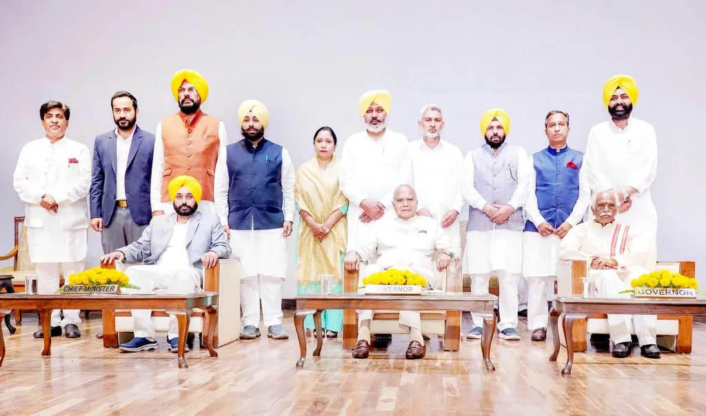 पंजाबमध्ये शनिवारी भगवंत मान सरकारच्या विस्तारित मंत्रिमंडळाचा शपथविधी पार पडला. त्यानुसार 10 मंत्र्यांनी शपथ घेतली. सर्वप्रथम हरपाल चीमा यांनी मंत्रिपदाची शपथ घेतली. यानंतर डॉ. बलजीत कौर, हरभजन सिंग ईटीओ, डॉ. विजय सिंगला, लालचंद कटारुचक, गुरमीत सिंग मीत हरे, कुलदीप धालीवाल, लालजीत सिंग भुल्लर, ब्रह्मशंकर झिम्पा आणि शेवटी हरजोत बैन्स आदींना पद व गोपनीयतेची शपथ देण्यात
