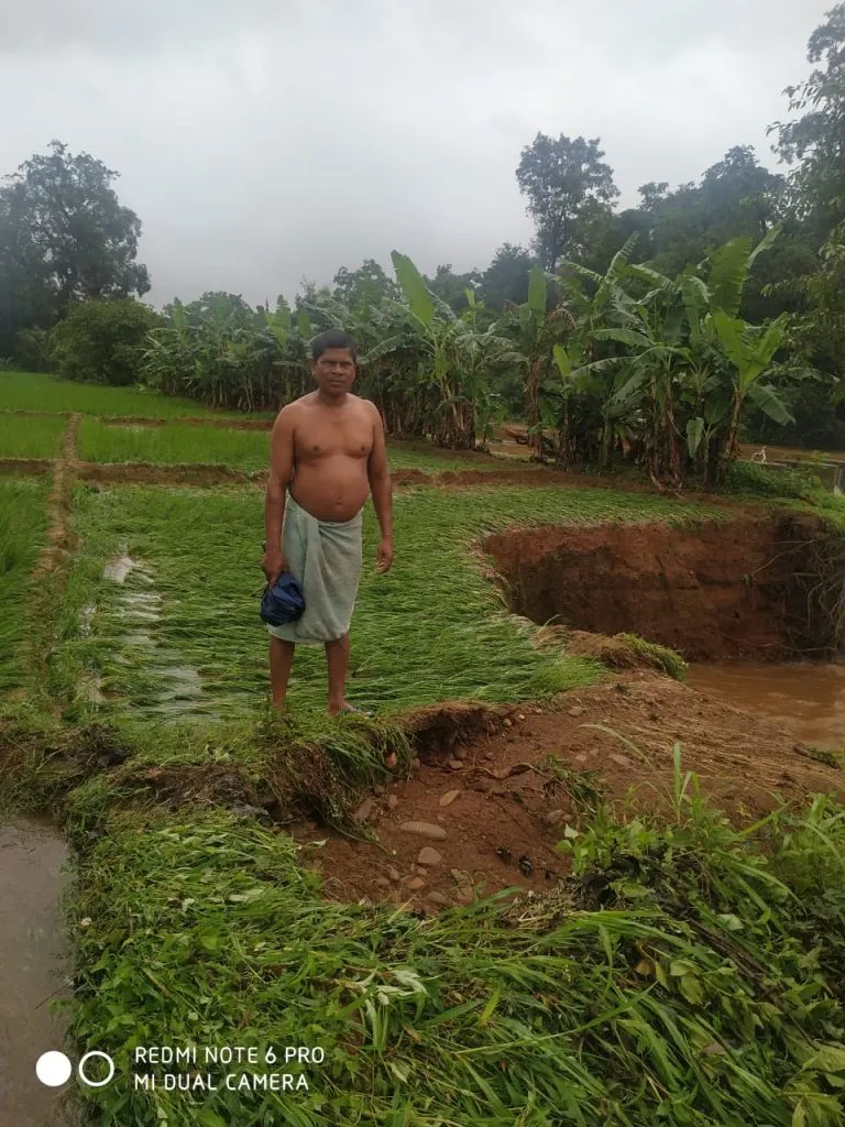 काणकोणात 6 रोजी मध्यरात्री पडलेल्या मुसळधार पावसामुळे तळपण आणि गालजीबाग नद्यांना पूर आलेला असून दोन्ही नद्यांच्या पाण्याची पातळी मोठय़ा प्रमाणात वाढली आहे. अकस्मात वाढलेल्या या पाण्यामुळे खोतीगाव पंचायतीमधील नदीच्या काठावरील शेतीमध्ये पाणी घुसून भातशेतीचे मोठय़ा प्रमाणात नुकसान झालेले आहे. नदीच्या काठावरील पणसुलेमळ येथील आनंदू वेळीप यांच्या भातशेतीजवळ मोठे भगदाड पडले असून पेरणी केलेली अर्ध्यापेक्षा अधिक शेती वाहून गेली आहे, तर काही ठिकाणी माती येऊन पडली असल्याची माहिती वेळीप यांनी दिली. यासंबंधीची कल्पना स्थानिक मामलेदार कार्यालयाला देण्यात आलेली आहे, असे त्यांनी स्पष्ट केले.