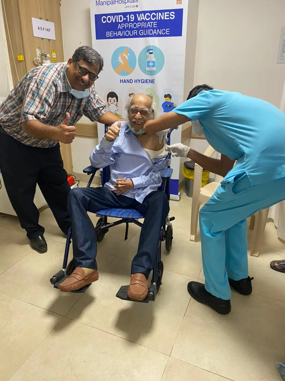 प्रख्यात चित्रकार 90 वर्षीय पद्मभूषण लक्ष्मण पै फोंडेकर यांनी बुधवारी मणिपाल इस्पितळात जाऊन कोरोना प्रतिबंधक लस टोचून घेतली. पै यांनी या लसीच पहिला डोस घेतलेला असून त्यांनी यावेळी मिश्किलपणे एक निवेदन केले, त्यात मी 90 वर्षीय व्यक्ती जर कोरोनाचा डोस घेऊ शकतो तर मग इतरांनी देखील बिनधास्तपणे हा कोरोनाच डोस घ्यावा. जणेकरून आपला गोवा व आपला देश कोरोनामुक्त व्हावा. श्री पै यांना कोरोना प्रतिबंधक लस प्रत्यक्ष डॉ. शेखर साळकर यांनीच टोचली.