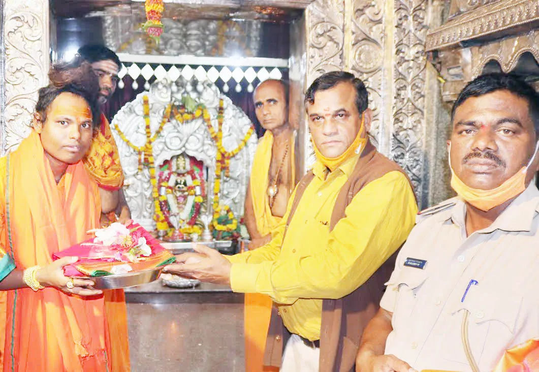 यावेळी मंदिराचे कार्यनिर्वाहक अधिकारी रवी कोटारगस्ती यांच्या हस्ते प. पू. श्री परलिंगेश्वर महास्वामी यांचा शाल व श्रीफळ देऊन सत्कार करण्यात आला.