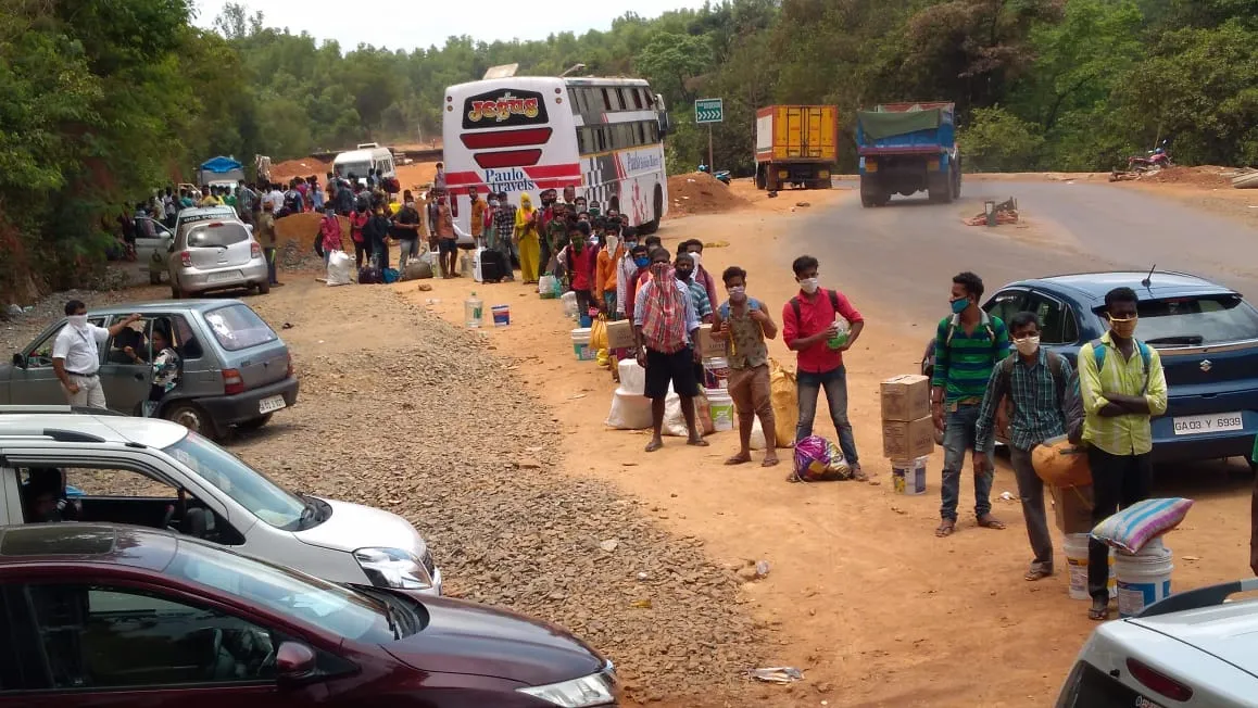 लॉकडाऊन काळात गोव्यात अडकलेल्या 160 पश्चिम बंगालच्या कामगार बुधवारी 27 रोजी पत्रादेवी चेक पोस्ट जवळ वाहनांसाठी थांबले होते . महाराष्ट्रातून बस वाहतूक सेवा त्यांना घेऊन जाणार आहे त्यासाठी हे सर्व कामगार पत्रादेवी नाक्मयावर जमा झाले होते .