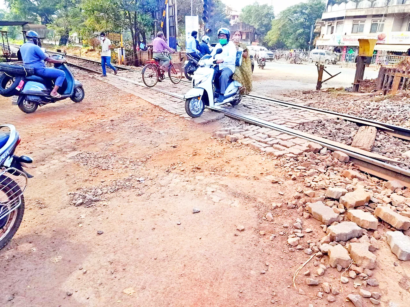 पुन्हा पेव्हर्स बसविण्याची मागणी प्रतिनिधी बेळगाव पहिले रेल्वेगेट येथील रुळानजीक महिन्याभरापूर्वी पेव्हर्स बसविण्यात आले होते. परंतु हे पेव्हर्स चांगल्या पद्धतीने बसविण्यात आलेले नसल्याने काही दिवसांमध्येच निखळले आहेत. निखळलेले पेव्हर्स वाहनचालकांसाठी डोकेदुखीचे ठरत असून ते पुन्हा बसविण्याची मागणी वाहनचालकांमधून होत आहे. रेल्वे विभागाने पहिल्या रेल्वेगेटच्या दुरुस्तीनंतर मोठी खडी टाकली होती. यामुळे दुचाकी वाहनांना ये-जा करणे कठीण झाले होते. खडीवरून पडून अपघातांचे प्रमाणही वाढत होते. यासाठी या ठिकाणी पेव्हर्स बसविण्याची मागणी करण्यात येत होती. त्यामुळे अखेर महिन्याभरापूर्वी या ठिकाणी पेव्हर्स बसविण्यात आले. पेव्हर्स बसविताना चांगल्या दर्जाचे साहित्य वापरले गेले नसल्याची तक्रारी वाहनचालक करीत आहेत. त्यामुळेच काही दिवसांमध्येच ते पेव्हर्स निखळले आहेत. पेव्हर्स निखळून रस्त्यावर पडले असल्याने रात्रीच्या वेळी दृष्टीस न पडल्याने दुचाकी चालकांचे अपघात होत आहेत. त्यामुळे या ठिकाणी पुन्हा पेव्हर्स बसविण्याची मागणी होत आहे.