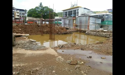 चिपळुणात पिलर उभारणीसाठीच्या खड्डय़ात साठले पाणी, बांधकाम रखडलेलेच,