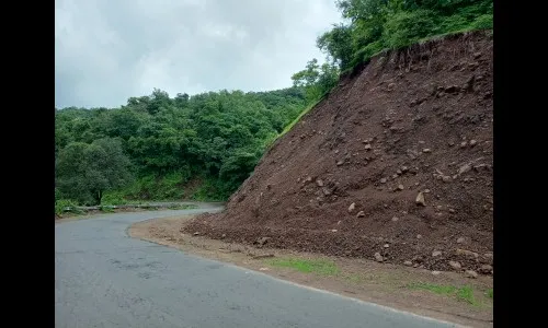 देवरुख ते रत्नागिरी मार्गावरील पांगरी येथे धोकादायक वळणावर दरडी कोसळण्याचे काम सुरुच असून अजूनही धोका कायम असल्याचे चित्र आहे.