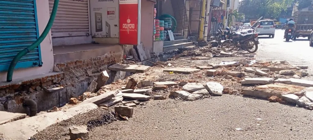 मात्र गटारीवरील फोडण्यात आलेले काँक्रीट व काढण्यात आलेल्या फरशा आणि बांधकाम साहित्य पाटील गल्ली रस्त्यावर विखुरले आहे. फोडण्यात आलेले बांधकाम साहित्य हटविण्याची आवश्यकता आहे. पण याकडे दुर्लक्ष करण्यात आल्याने रहदारीस अडथळा ठरत आहे. रात्रीच्यावेळी वाहनधारकांना धोका निर्माण झाला आहे. गटारी स्वच्छ झाल्या, पण रस्त्यावरील अडथळे स्वच्छ करण्याकडे महापालिकेचे दुर्लक्ष झाले आहे. त्यामुळे रस्त्यावरील साहित्य कधी हटविणार? अशी विचारणा नागरिक करीत आहेत. फरशांव्यतिरिक्त टाकावू बांधकाम साहित्य हटवून रस्ता मोकळा करावा, अशी मागणी नागरिक करीत आहे.