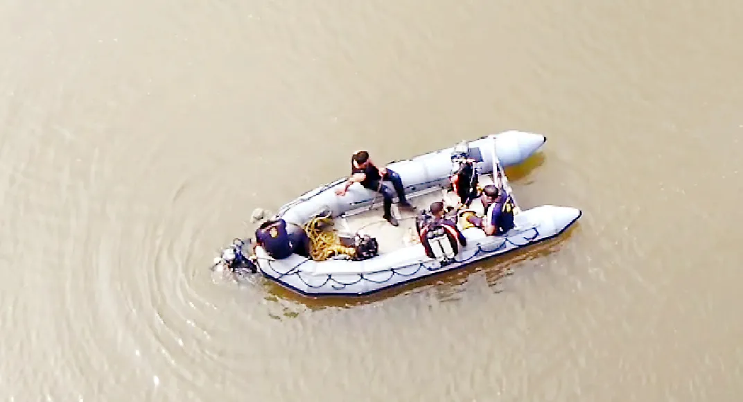 नौदल जवानांच्या मदतीने शोधकार्य मोहीम, धोकादायक मगरीमुळे शोधकार्य थांबविले.