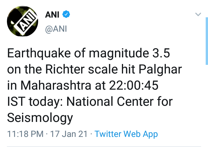 फक्त पालघरच नव्हे तर, मागील काही दिवसांपूर्वी उत्तर प्रदेशातील नोएडा येथेही 2.9 क्षमतेचा भूकंप आला होता. ज्याचे धक्के दिल्ली एनसीआर भागातही जाणवले होते. भूकंपाचा केंद्रबिंदू नोएडापासून उत्तर- उत्तरपूर्वेला 37 किलोमीटर अंतरावर असल्याचे सांगण्यात आले होते.