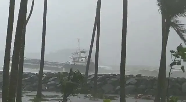 चक्रीवादळात भरकटून मिर्या किनार्यावर आलेले भले मोठे जहाज सुमारे दिड महिना झाले तरी तेथेच अडकून पडले आहे. लाटांच्या तडाख्याने जहाज वाळूत रुतले आहे. सोमवारी उधाणाच्या लाटा आदळून जहाज अधिकच क्षतीग्रस्त झाले. मोठ्या लाटा जहाजावरून गेल्यामुळे ते जहाज आणखी किती दिवस तग धरून राहणार याबाबत प्रश्न उपस्थित होत आहे.