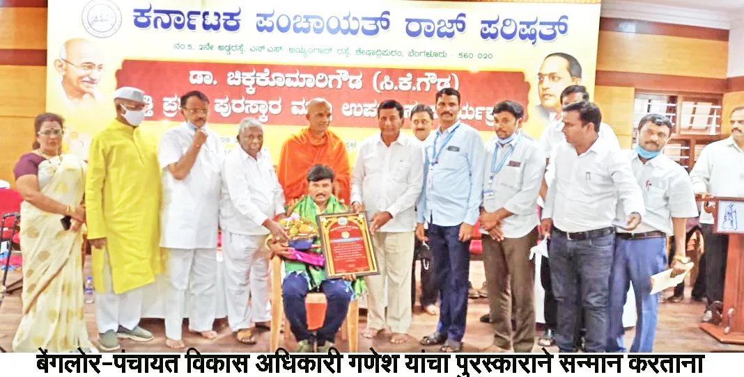 बेंगळूर येथील कर्नाटक पंचायतराज परिषदेच्या भवनात के. एस. गणेश यांचा मानचिन्ह, प्रमाणपत्र व श्रीफळ, शाल देऊन सन्मान करण्यात आला. यावेळी डॉ. कोमारीगौडा, कार्याध्यक्ष नारायण स्वामी, प्रधान कार्यदशी सतीश आदी मान्यवरांच्या हस्ते त्यांचा सन्मान करण्यात आला. या सन्मानाबद्दल त्यांचे अभिनंदन होत आहे.