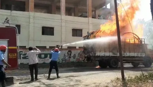 येथील उत्तर शिवाजीनगर परिसरातील महापालिकेच्या आरसीएच सेंटरसमोर वीज वितरणच्या मुख्य लाईनला स्पर्श झाल्याने पीव्हीसी पाईप घेऊन जाणाऱ्या भारत गॅस कंपनीच्या आयशर मालमोटारीला भीषण आग लागली. पाठीमागून येणाऱ्या याच कंपनीच्या दुसऱ्या गाडीच्या चालकाने संबंधित मालमोटार चालकाला आग लागण्याचे सांगितले. चालकांने तात्काळ गाडी थांबवत गाडीतून उडी मारली. महापालिका अग्निशमन विभागाच्या दोन गाड्यानी घटनास्थळी धाव घेऊन आग आटोक्यात आणली. मंगळवारी दुपारी पावणे दोनच्या सुमारास हा प्रकार घडला. आगीत पाईप पूर्णपणे जळून गेल्या. तसेच मालमोटारचेही काही प्रमाणात नुकसान झाले. आगीत कोणतीही जीवितहानी झाली नाही.