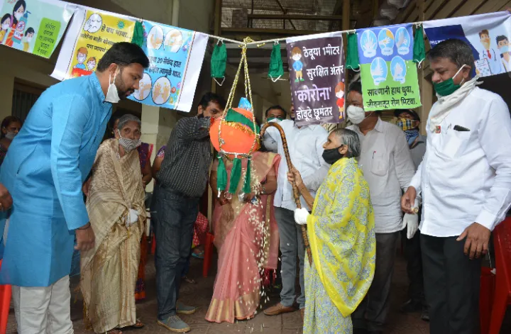 कोरोना महामारीचे सावट सर्व क्षेत्रांबरोबर सण उत्सावांवर देखील आले आहे. अशा काळात माणूसकी जपत शिवसंग्रामच्यावतीने सेन्ट जोन्स होम या आश्रमातील वृध्द महिलांबरोबर अनोख्या पद्धतीने दहीहंडी साजरी करण्यात आली आहे. ठेवूया 1 मीटर सुरक्षित अंतर कोरोना होऊदे छूमंतर, सतत धूवा 20 सेकंद हात त्यामुळे कोरोनाचा होईल घात, कोरोना वायरसला त्याच्याच स्टाइलने हरवा असा संदेश देत वृध्द महिलांनी व शिवसंग्रामच्या कार्यकर्त्यांनी निरोगी भारताचा संदेश दिला.