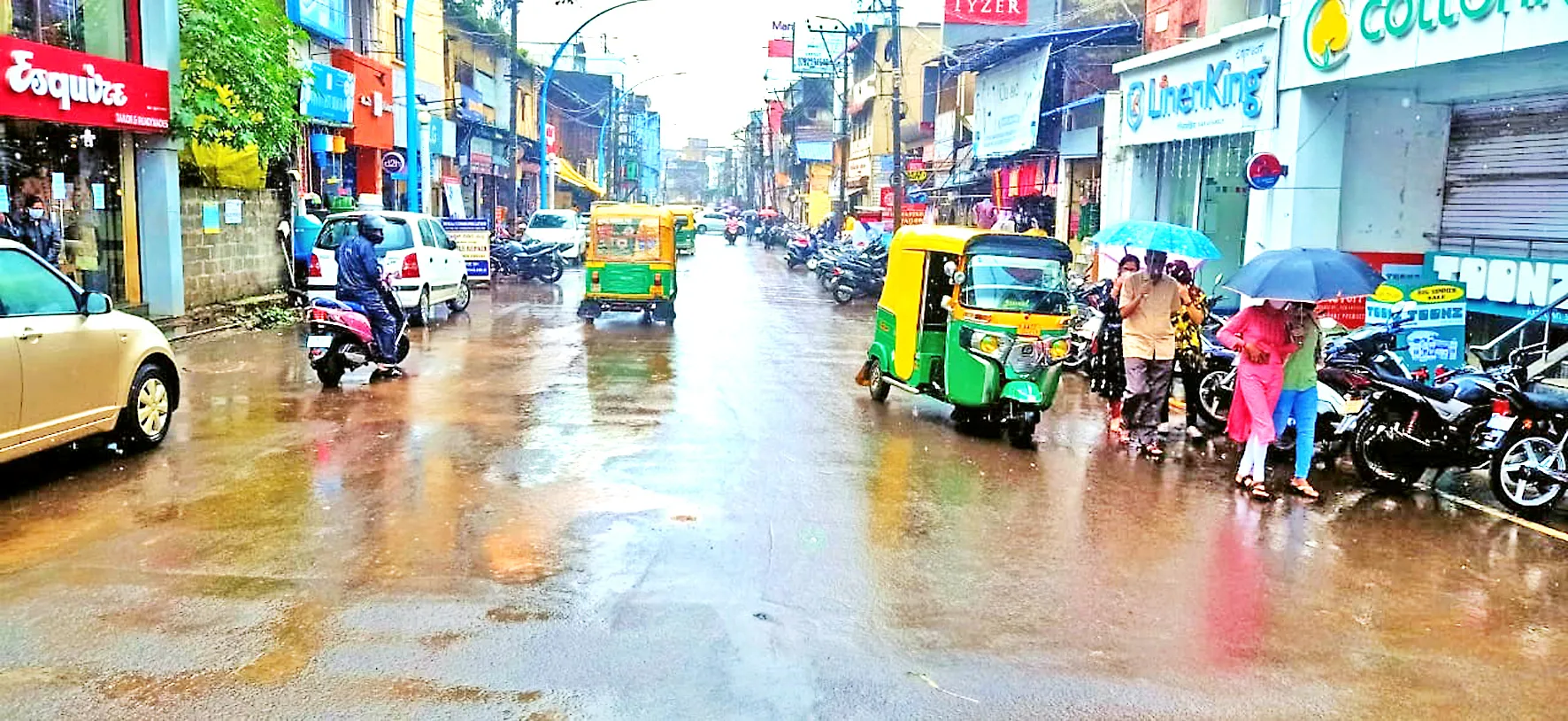 सोमवारी सकाळपासूनच पावसाची संततधार सुरू झाली. त्यामुळे सखल भागामध्ये पाणी साचले होते. सकाळपासून पावसाला सुरुवात झाल्यामुळे घरांतून बाहेर पडताना रेनकोट तसेच छत्रींचा आधार घ्यावा लागला. बाजारपेठेतही त्यांचा आधार घेऊनच खरेदी करावी लागत होती. संततधार पावसामुळे बैठे व्यापारी तसेच फेरीवाले यांची तारांबळ उडाली. सकाळच्या सत्रात पाऊस झाला तरी दुपारनंतर पावसाने उघडीप दिली होती. भात लागवड (नट्टी) करण्यासाठी मोठय़ा पावसाची गरज असून शेतकरी प्रतीक्षेत आहेत.