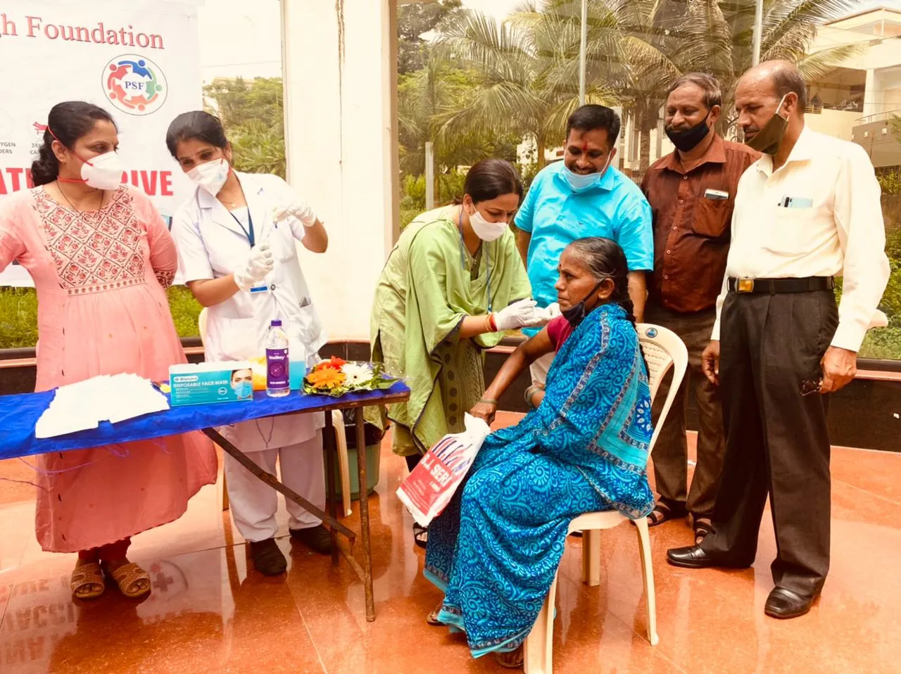 पृथ्वीसिंग फौंडेशन व डॉ. सोनाली सरनोबत यांच्या सहकार्याने विनायकनगर येथे शुक्रवारी लसीकरण मोहीम पार पडली. याप्रसंगी खासदार मंगला अंगडी उपस्थित होत्या. डॉ. सरनोबत यांनी सर्वांना लस दिली. यावेळी विलास पै, भैरू पाटील, विनायकनगर प्राथमिक आरोग्य केंद्रातील कर्मचारी व फौंडेशनचे कर्मचारी उपस्थित होते.