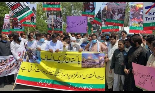 तत्पूर्वी पाकिस्तानने इस्रायलच्या विरोधात विधाने करत त्याला पॅलेस्टाईनवरील हल्ले रोखण्यास सांगितले आहे. पाकिस्तानचे विदेशमंत्री शाह महमूद कुरैशी मंगळवारी तुर्कस्तानात पोहोचले आहेत. तुर्क अध्यक्ष रिसेप तैयप एर्दोगान आणि तेथील विदेशमंत्र्यांची भेट घेत इस्रायलच्या विरोधातील रणनीति तयार करण्याचा कुरैशी यांचा प्रयत्न आहे. तसेच पॅलेस्टाईनच्या समर्थनार्थ शुक्रवारी एकता दिन आयोजित करण्याचा निर्णय पाकिस्तानने घेतला आहे.