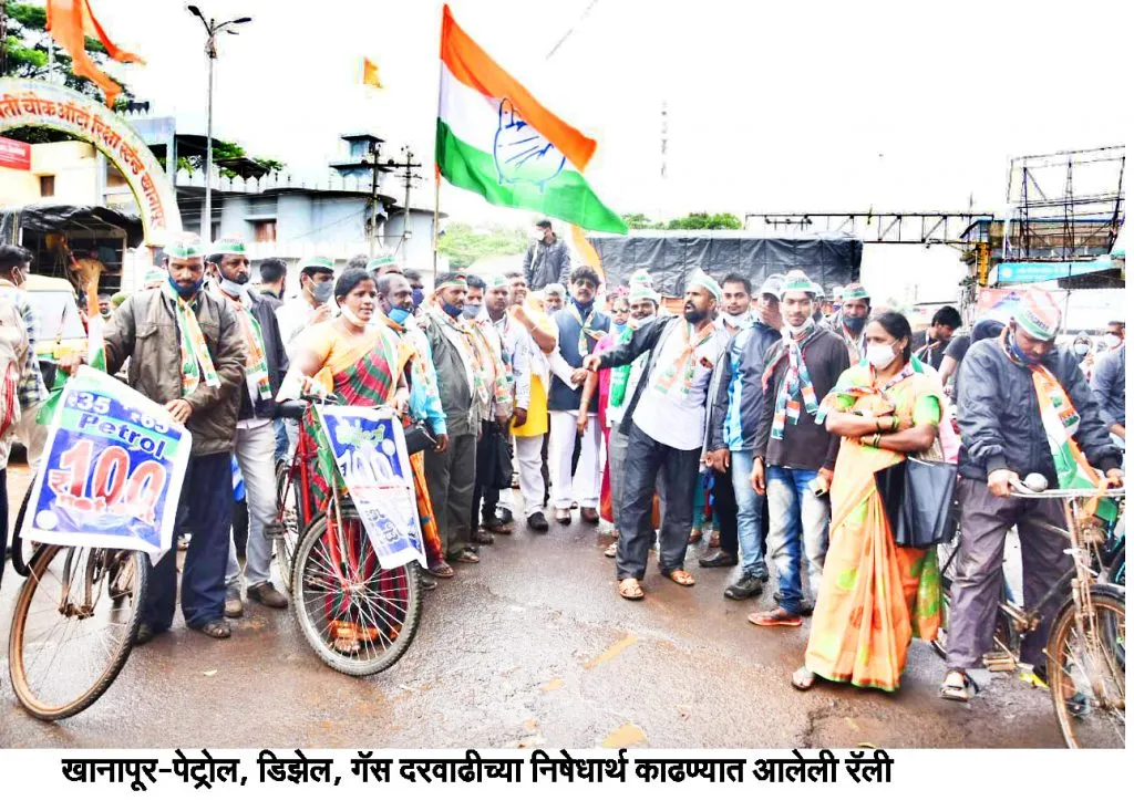 खानापुरात काँग्रेसची सायकल रॅली : दर कमी करा, अन्यथा खुर्च्या खाली करा