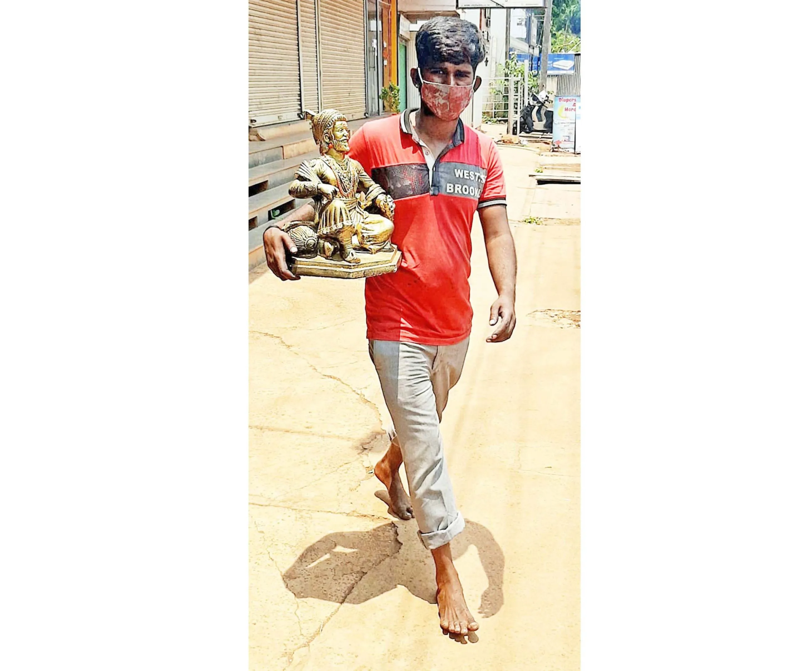 एकीकडे कोरोना, लॉकडाऊन यांची धास्ती घेतल्याने जीवनावश्यक साहित्य जमा करण्यासाठी नागरिकांची रीघ लागली असताना दुसरीकडे आपल्या पोटासाठी मूर्ती विकण्यासाठीची पायपीट असे विदारक चित्र सोमवारी शहापूर परिसरात दिसून आले. लॉकडाऊन झाले तर मूर्ती विकण्याचा व्यवसाय बंद होईल या भावनेने पायात चप्पल नसतानाही मूर्ती विकण्यासाठीची विपेत्याची तळमळ बघ्यांच्या डोळय़ातून पाणी आणत होती.