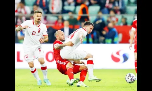 येथे झालेल्या युरो चषक 2020 सराव सामन्यात रशियाला 1-1 असे बरोबरीत रोखण्यासाठी पोलंडला संघर्ष करावा लागला. याकुब स्वीएरकॉकने पोलंडचा गोल नोंदवल्यानंतर व्याचेस्लाव्ह काराव्हाएव्हने रशियाला बरोबरी साधून देणारा गोल नोंदवला. पोलंडचे प्रशिक्षक पॉलो सौसा यांनी स्टार्टिंग इलेव्हनमधून अनेक नियमित खेळाडूंना बाहेर ठेवले होते. त्यात टॉप स्कोअरर रॉबर्ट लेवान्डोवस्कीचाही समावेश होता. तरीही त्यांच्या संघाने फ्लाईंग स्टार्ट देताना याकुबने चौथ्याच मिनिटाला पोलंडला आघाडी मिळवून दिली. याकुबचा हा पहिलाच आंतरराष्ट्रीय गोल होता. रशियाने नंतर 20 व्या मिनिटाला बरोबरी साधण्यात यश मिळविले. राईटबॅक काराव्हाएव्हने अलेक्झांडर गोलोविनकडून मिळालेल्या क्रॉस पासवर गोलरक्षक लुकास फॅबियान्स्कीला हुलकावणी देत हा गोल नोंदवला. पूर्वार्धात दोन्ही संघांनी अनेकदा गोलपोस्टपर्यंत मजल मारली. पण सदोष नेमबाजीमुळे त्यांना मिळालेल्या संधींचा लाभ घेता आला नाही. उत्तरार्धात दोन्ही संघांनी अनेक बदल केले. पण त्याला फारसे यश मिळाले नाही. रशिया युरो स्पर्धेत डेन्मार्क, फिनलंड, बेल्जियम यांच्यासह गट ब मध्ये असून गट ई मध्ये पोलंड, स्पेन, स्वीडन, स्लोव्हाकिया यांचा समावेश आहे.