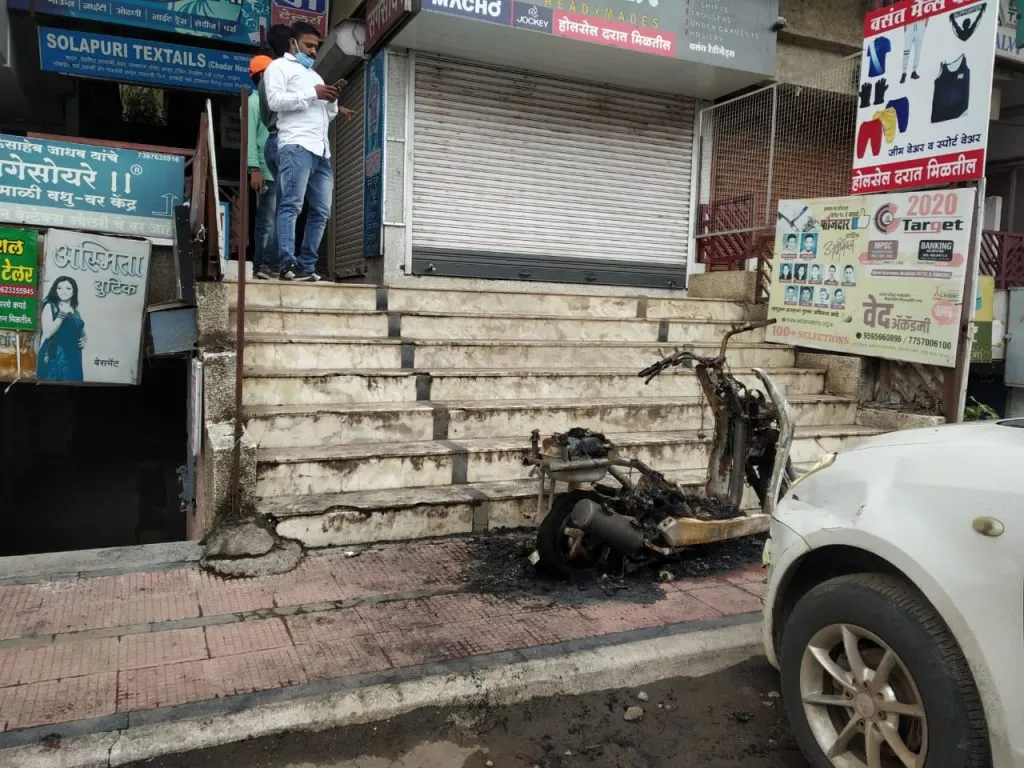 पोवई नाका परिसरात कासट मार्केटमध्ये मध्यरात्री अडीच वाजण्याच्या सुमारास एक दुचाकी पूर्णतः जळाली. तर दुसऱ्या एका दुचाकीचे मोठे नुकसान झाले. आगीची एका चारचाकी वाहनालाही पुढील बाजूने झळ बसली. सातारा शहर पोलिसांनी घटनास्थळाची पाहणी केली असून, या वाहनांना आग लावली की लागली? याचा सातारा शहर पोलीस तपास करत आहेत.
