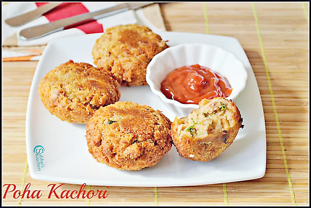 कृती : पोहे धुवून निथळून दहा मिनिटे तसेच ठेवावेत. बेड स्लाईसच्या कडा काढून त्याचा मधला भाग घ्यावा. त्याचे छोटे तुकडे करून मिक्सरला लावून घ्यावे. नंतर त्यात मॅश केलेले बटाटे, लाल तिखट पावडर आणि मीठ घालून त्याचा पारीसाठी गोळा मळावा. दुसऱया बाऊलमध्ये पोहे घेऊन त्यात शेंगदाण्याचे कूट, हिरवी मिरची, चाट मसाला, लाल तिखट पावडर, मीठ, कोथिंबीर आणि लिंबूरस घालून मिश्रण मिक्स करावे. दोन मिनिटांनंतर त्याचे समान आठ गोळे बनवावेत. हाताला थोडेसे तेल लावून बेडच्या गोळय़ाची पारी बनवून त्यात तयार बटाटय़ाचे सारण घालून गोळा बंद करावा. त्याला हलके दाब देत कचोरी बनवून गरम तेलात खरपूस तळावी. तयार कचोरी सॉससोबत खाण्यास द्या.