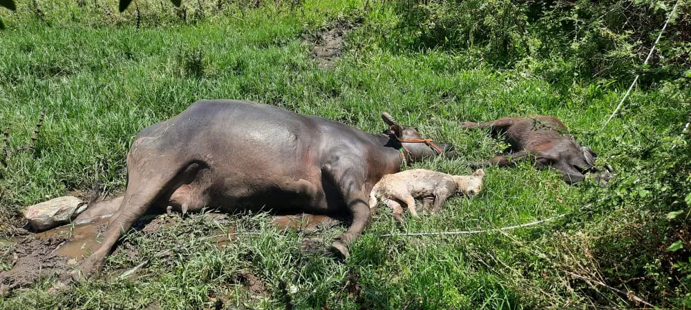 याबाबत घटनास्थळावरून मिळालेली माहिती अशी की मंगळवारी सायंकाळी सातारालगतच्या भागात वादळी वाऱ्यासह पाऊस झाला. या पावसात खेड ते कोरेगाव जाणाऱ्या रस्त्यालगत असणाऱ्या मेकॅनिकल कॉलनीच्या शेजारील विधुत वाहक तार तुटली. त्याची माहिती देण्यासाठी स्थानिकांनी महावितरण कार्यालयात फोन ही केल्याचे सांगण्यात येते. बुधवारी सकाळी 11.30वाजण्याच्या सुमारास प्रतापसिंहनगर येथील बळी गंगाराम खुडे यांच्या मालकीच्या तीन म्हैशी चारायला घेऊन निघाले होते तोच पडलेल्या तारेचा विद्युत झटका बसताच तिन्ही म्हैशी आणि कुत्रे तडफडून मृत्यू झाल्याचे डोळ्यादेखत घटना घडली. सुदैवाने म्हैशी चारायला घेऊन जाणाऱ्यास काही झाले नाही.म्हैशी मृत झाल्याने कुटूंबियांना समजताच दुःखाचा डोंगर कोसळला. पोलिसांना ही माहिती मिळताच पोलीस घटनास्थळी दाखल झाले.