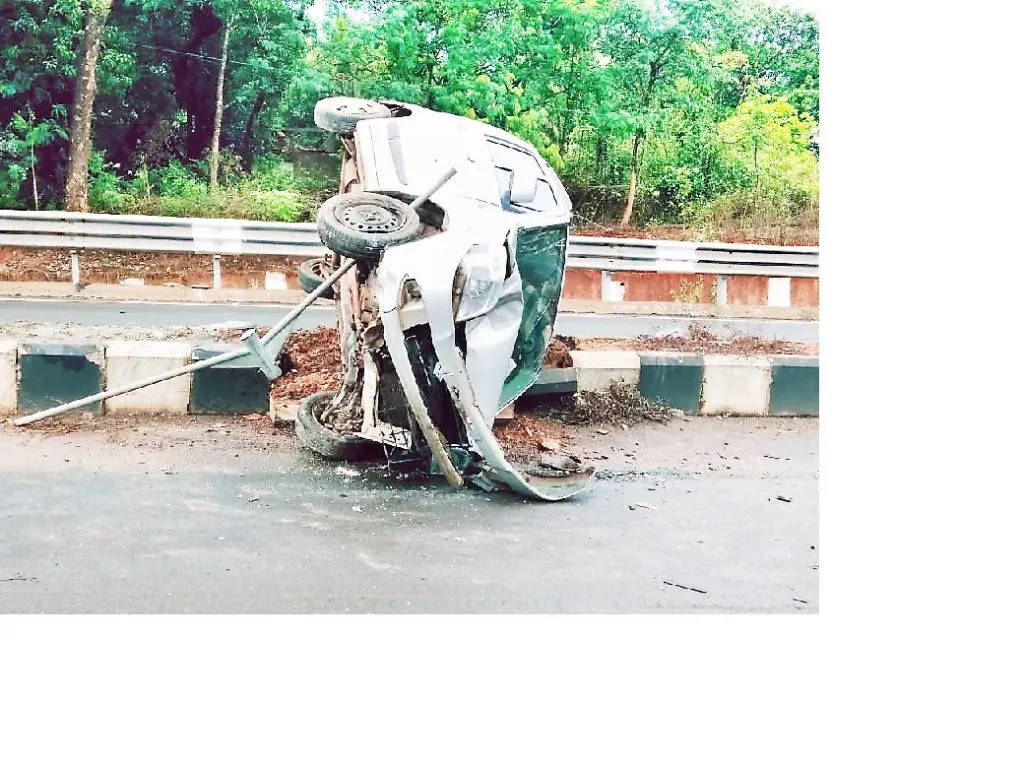 ढवळी-फर्मागुडी बगलरस्ता येथील उड्डाणपुलावर झालेल्या स्वयंअपघातात दुभाजकाला धडक देत चारचाकी कलंडण्याची घटना काल सोमवारी फोंडा पोलिस स्थानकात नोंद करण्यात आली आहे. सुदैवाने चालक व इतर प्रवासी किरकोळ जखमावर बचावले. काल दुपारी 3 वा. सुमारास ही घटना घडली.