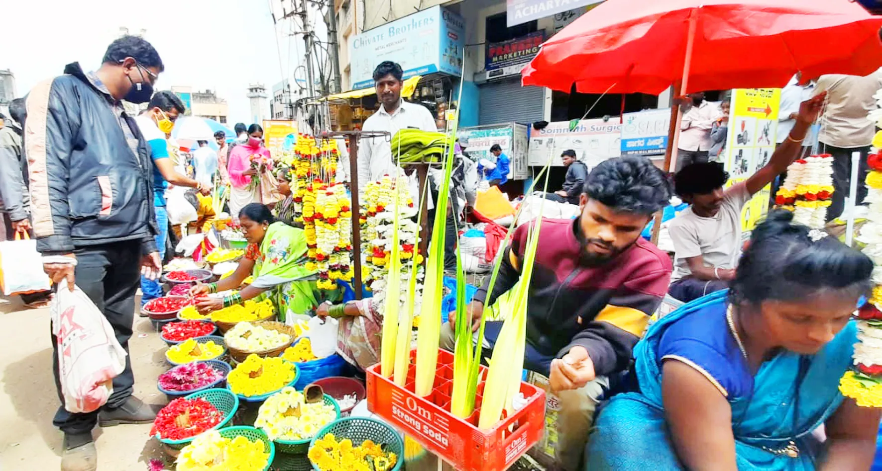अशोकनगरबरोबरच नरगुंदकर भावे चौक येथेही फुलांच्या राशी घेऊन विपेते पहाटेच दाखल झाले. मात्र होलसेलपेक्षा अर्थातच दर चढा होता. कमळ, केवडा, झेंडू, शेवंती, गुलाब या फुलांची येथे अधिक प्रमाणात खरेदी झाली. श्रावणापासून फूल बाजाराला बहर आला आहे. आता गणेशोत्सवानंतर नवरात्र व पुढे दिवाळीपर्यंत फूल बाजाराला महत्त्व प्राप्त होणार आहे. होलसेल मार्केटमध्ये फुलांचे दर आवक वाढल्यामुळे काही प्रमाणात घसरले. परंतु विक्री चांगली झाल्याने विपेतेही खूश झाले.