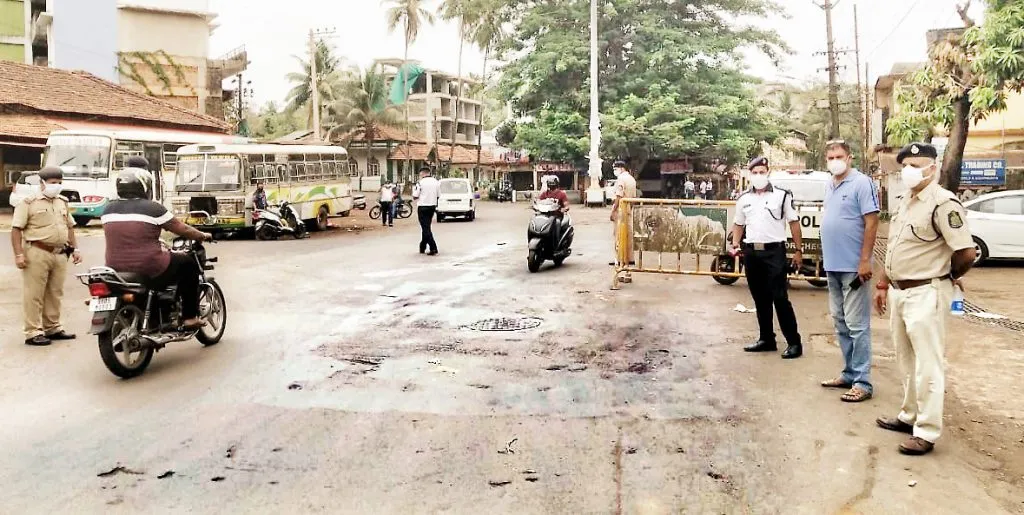 कोरोना महामारीच्या पार्श्वभूमिवर राज्यात रविवारपासून लागू केलेल्या कर्फ्यूचे जनतेकडून पालन व्हावे यासाठी फोंडा तालुक्यात पोलिसांनी कडेकोट बंदोबस्त केलेला केलेला आहे. फोंडा शहर तसेच तालुक्यातील मोक्याच्या ठिकाणी नाकाबंदी करण्यात आली असून गस्त घालण्यासाठी फिरती पथकेही तैनात करण्यात आली आहेत. वाहतूक पोलीस उपअधीक्षक प्रबोध शिरवईकर, वाहतूक निरीक्षक प्रदीप वेळीप यांनी रविवारी दुपारी पोलीस बंदोबस्ताचा आढावा घेतला. उपजिल्हाधिकारी प्रदीप नाईक हेही परिस्थितीवर लक्ष ठेऊन आहेत. पुढील पंधरा दिवस हा कर्फ्यू लागू होणार असल्याने रविवारी सकाळी फोंडय़ात जीवनावश्यक वस्तूंच्या खरेदीसाठी पुन्हा गर्दी उडाली. फोंडय़ातील मुख्य बाजारपेठेतील भाजी, फळ व फुलबाजार तसेच मासळी मार्केटही बंद आहे. मात्र शहरातील विविध नाक्यांवर आंबे व मासे विक्रेत्यांची रविवारी सकाळी आपली दुकाने थाटली होती. तेथे गर्दी दिसताच पोलीस त्यांना पिटाळून लावित. काही वेळात पुन्हा दुसऱया जागेत ते आपली दुकाने उघडून विक्रीला सुरुवात करीत. पोलीस व या व्यापाऱयांचा हा लपाछपिचा खेळ बराचवेळ सुरु होता. दुपारी संचारबंदी लागू होताच खरेदीसाठी आलेले लोक व व्यापारी बाजारातून पांगले. त्यानंतर सर्वत्र वातावरण सामसूम होते. संचारबंदीच्या काळात नागरिकांनी कारणाशिवाय बाहेर फिरु नये. कोरोनाचा वाढता संसर्ग रोखण्यासाठी सरकारने घालून दिलेल्या निर्बंधाचे पालन करावे, असे आवाहन सर्वत्र फिरुन केले जात होते.