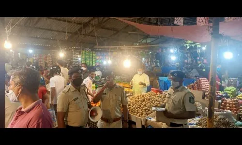 फोंडा पोलिसांनी काल रविवारी बुधवार पेठ बाजार परिसरातील व्यापारी व ग्राहकांशी संपर्क साधला. लाऊडस्पिकरवर कोरोनाविषयी दक्षता पाळण्याची नियमावली सांगितली. विनामास्क आढळलेल्या एकूण 53 व्यापारी व ग्राहकांना चलन फाडण्यात आले. कोविडचा प्रसार वाढू नये म्हणून ही मोहीम राबविण्यात येत असल्याची माहिती पोलीस निरीक्षक मोहन गावडे यांनी दिली. वाढत्या कोरोना रूग्णांच्या पार्श्वभूमीवर गर्दीचा माहोल टाळा, उत्तर व दक्षिण गोव्यात 144 कलमअंतर्गत जमावबंदी लागू करण्यात आली असून सर्वानी सामाजिक अंतर राखावे असे आवाहन केले आहे. उपनिरीक्षक आदित्य वेळीप यांच्या जागृती टिममध्ये कॉन्स्टेबल सिद्धेश गावस,धावेश खरात, सुशांत गावस, अक्षय नाईक व शुभम शिवोलकर यांचा सहभाग होता.