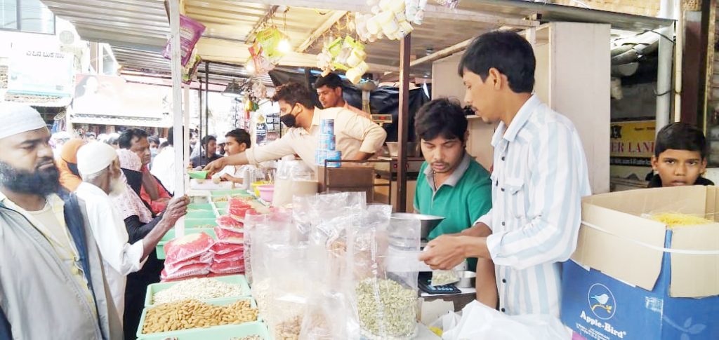 लॉकडाऊन काळातच रमजान महिना पार पडला. यावेळी सर्व दुकाने बंद असल्याने व्यापारावर परिणाम झाला. रमजान सणासाठी मागविलेल्या साहित्याची विक्री आता ईद सणानिमित्त करत असल्याची माहिती यावेळी अत्तर आणि टोपी विपेते अबू जाईद यांनी दिली. यावषी सुक्या मेव्याची खरेदी पन्नास टक्क्मयांनी कमी झाल्याचे यावेळी सांगण्यात आले.