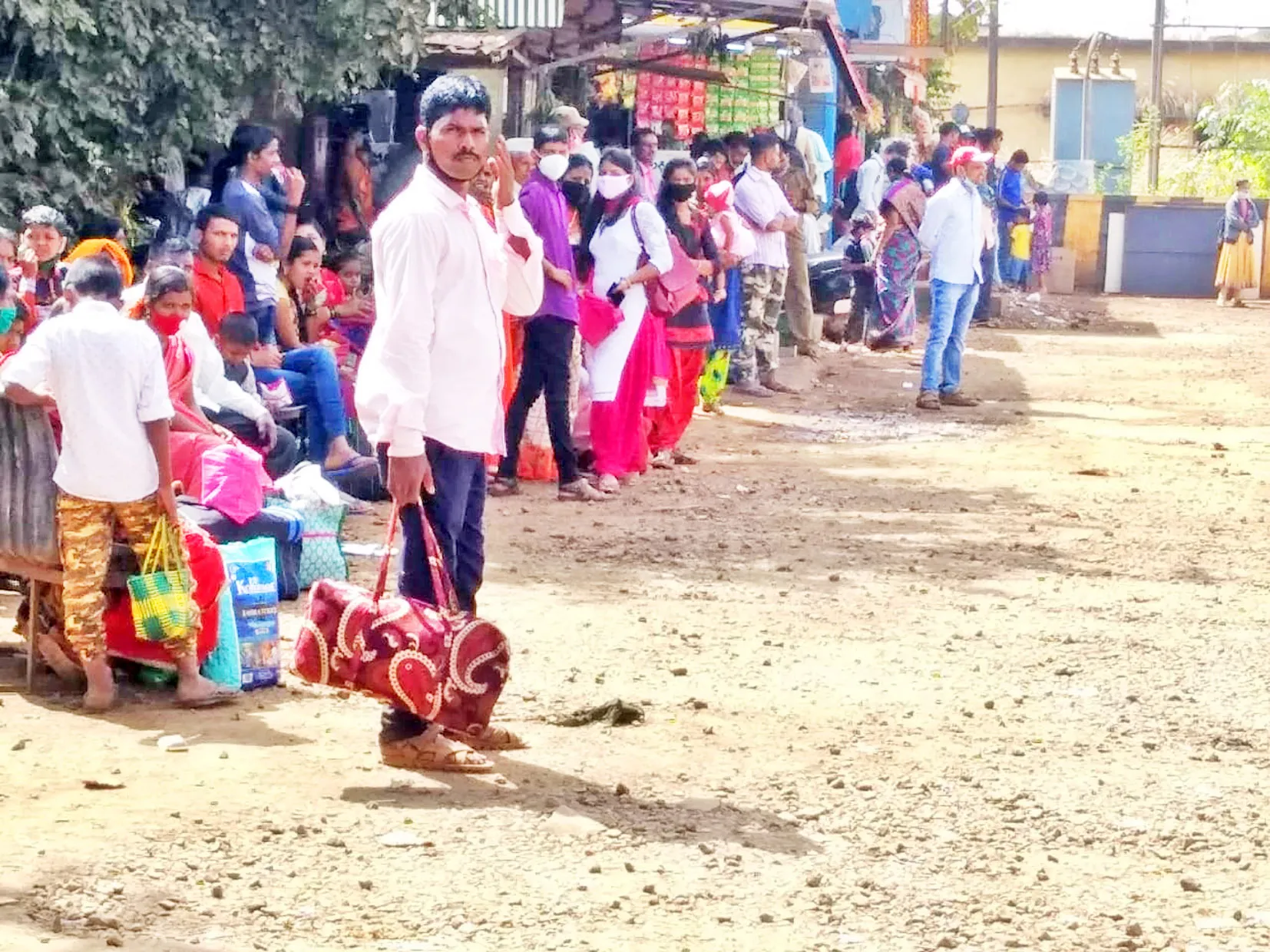स्मार्ट बसस्थानकाच्या कामामुळे आवारात तात्पुरत्या बसस्थानकाची निर्मिती करण्यात आली आहे. मात्र या ठिकाणी आलेल्या प्रवाशांना बसण्याची आसन क्यवस्था नसल्याने बसच्या प्रतीक्षेत ताटकळत थांबावे लागत आहे. बसस्थानकात ठेवण्यात आलेली आसने अपुरी पडत असल्याने प्रवाशांना बसथांबा सोडून बाहेर थांबावे लागत आहे. आवारातील रस्त्याची दुर्दशा झाल्याने अंतर्गत भाग धुळीने माखला आहे. त्यामुळे धुळीचा सामना करावा लागत आहे. त्याबरोबर स्थानिक बसेससह लांबपल्ल्याच्या बसेस एकाच ठिकाणी उभी करण्यात येत असल्याने प्रवाशांना बस शोधताना अडचणी निर्माण होत आहेत. दिवाळी सणासाठी प्रवाशांची संख्या वाढली असून प्रवाशांना बसण्यासाठी आसने नसल्याने ताटकळत थांबावे लागत आहे. त्यामुळे प्रवाशांना तातडीने आसनाची व्यवस्था करावी, अशी मागणी होत आहे.
