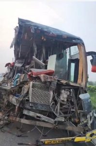 उत्तर प्रदेशातील उन्नाव येथे भरधाव बसची दूध टँकरला धडक