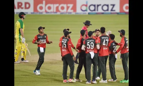 ‘सामनावीर’ तसेच कर्णधार मेहमुदुल्लाच्या शानदार अर्धशतकाच्या जोरावर यजमान बांगलादेशने बलाढय़ ऑस्ट्रेलियावर 5 सामन्यांच्या टी-20 मालिकेत 3-0 अशी विजयी आघाडी मिळविताना शुक्रवारच्या तिसऱया सामन्यात कांगारूंचा 10 धावांनी पराभव केला. बांगलादेशच्या क्रिकेट इतिहासामध्ये पहिल्यांदाच ऑस्ट्रेलियावर मालिका विजय मिळविला आहे.