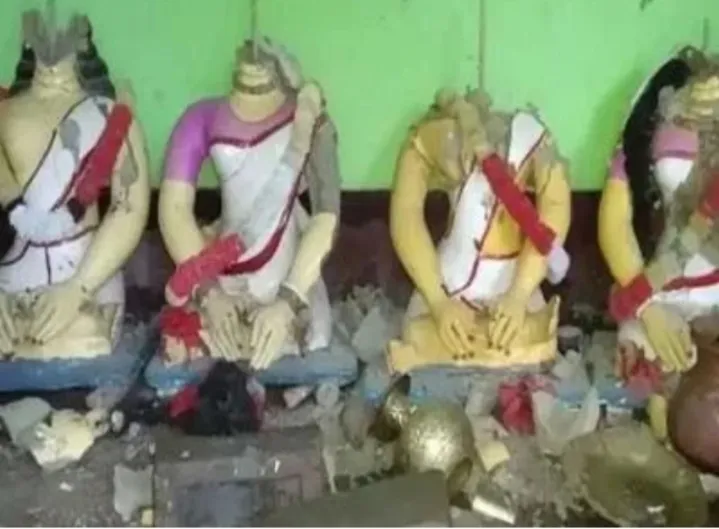 मिळालेल्या माहितीनुसार, शुक्रवारी (दि. 6) रात्री 9 वाजण्याच्या सुमारास अल्पसंख्यांक हिंदू महिला भक्तांच्या गटाने धार्मिक यात्रा काढली होती. ही यात्रा पुरबा पारा मंदिर ते शियाली स्मशानभूमीर्यंत होती. वाटेत त्यांनी एक मशीद ओलांडली. त्यामुळे मशिदीतील मुस्लीम लोकांनी यावर आक्षेप घेतला. त्यावेळी हिंदू भक्त आणि इस्लामी धर्मगुरु यांच्यात वाद झाला. या वादाचे रुपांतर दंगलीत झाले आणि कट्टरपंथीयांनी 6 हिंदू मंदिरात प्रमाणात तोडफोड केली. या घटनेत 50 हून अधिक मूर्त्यांचे नुकसान झाले आहे. याप्रकरणी पोलिसांनी दहा आरोपींना अटक केली आहे.