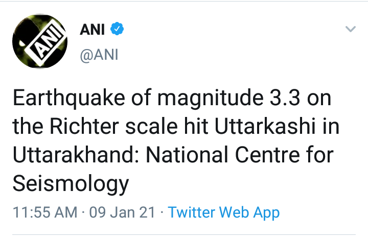 मिळालेल्या माहितीनुसार, शनिवारी सकाळी 11 वाजून 27 मिनिटांनी उत्तरकाशी जिल्ह्यासह अन्य काही भागात भूकंप झाला आहे. भूकंपाची तीव्रता 3.3 रिश्टल स्केल एवढी होती. या भूकंपामुळे कोणत्याही प्रकारची हानी झालेली नाही आहे. लोकांना भूकंपाची जाणीव होताच लोक घरातून बाहेर पडले.