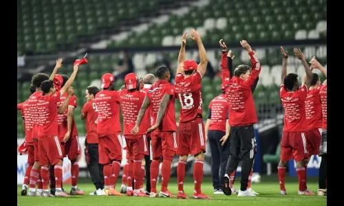 या संघाचे प्रशिक्षक हॅन्सी फ्लिक यांनी पहिल्याच मोसमात बुंदेस्लिगाचे जेतेपद पटकावण्याचा मान मिळविला. गेल्या नोव्हेंबरमध्ये त्यांनी निको कोव्हॅकनंतर या संघाची सूत्रे स्वीकारली होती. कोरोना व्हायरसच्या ब्रेकनंतरही बायर्नचा ओघ कमी झाला नसल्याचे या सामन्यात दिसून आले. गेल्या महिन्यात जर्मनीत फुटबॉलला पुन्हा प्रारंभ झाल्यानंतर झालेल्या आठही सामन्यात त्यांनी विजय मिळविला आहे. 2014 मध्ये जर्मनीने विश्वचषक जिंकला त्यावेळी फ्लिक संघाचे साहाय्यक प्रशिक्षक होते. त्यांना तिहेरी मुकुट साधण्याची संधी असून 4 जुलै रोजी जर्मन कप अंतिम लढतीत बायर्नचा मुकाबला बायर लिव्हरकुसेनशी होणार आहे. याशिवाय चॅम्पियन्स लीगमध्ये शेवटच्या 16 फेरीतील पहिल्या टप्प्याच्या लढतीत बायर्नने चेल्सीवर 3-0 असा विजय मिळवित आघाडी घेतली आहे. बायर्नच्या थॉमस म्युलरचे हे बुंदेस्लिगाचे नववे जेतेपद असून माजी खेळाडू प्रँक रिबेरीच्या विक्रमाशी त्याने बरोबरी केली आहे.