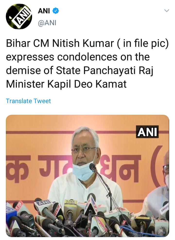 कपिल देव कामत हे 10 वर्ष मंत्री होते. जनता दल मधून ते गेली 40 वर्षे राजकारणात होते. ते एक चांगले नेते होते. त्यांचा पक्षाला मोठा आधार होता. ते एक लोकप्रिय नेता होते. त्यांच्या निधनाने मला खूप दुःख झाले आहे तसेच त्यांच्या निधनामुळे सामाजिक आणि राजकीय क्षेत्राचे मोठे नुकसान झाले आहे, अशी प्रतिक्रिया मुख्यमंत्र्यांनी व्यक्त केली.