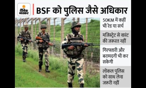 बीएसएफ अधिकाऱयांना पश्चिम बंगाल, पंजाब व आसाममध्ये देशाच्या सीमेपासून 50 कि. मी.पर्यंतच्या भागात तपास, अटक आणि जप्तीची परवानगी देण्याचा निर्णय केंद्र सरकारने घेतला. यापूर्वी बीएसएफला केवळ 15 किलोमीटरपर्यंत कारवाईचे अधिकार होते. गुजरातसह काही राज्यांत सीमा सुरक्षा दलाचे अधिकारक्षेत्र कमी केले. सोबतच, मणिपूर, मिझोरम, त्रिपुरा, नागालँड या राज्यांत बीएसएफचे अधिकारक्षेत्र कमी करण्यात आले. या राज्यांतील बीएसएफचे अधिकारक्षेत्र पूर्वी 80 किलोमीटरपर्यंत होते, ते आता 20 किलोमीटरपर्यंत कमी करण्यात आले आहे.
