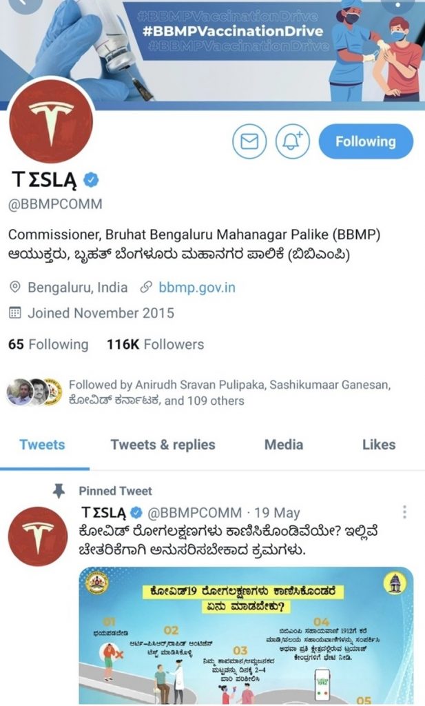 दरम्यान, नंतरट्विटर अकाऊंटचे नाव बदलून ‘-’ केले गेले. बीबीएमपीच्या सूत्रांनी याविषयी माहिती दिली. त्यांनी बेंगळूर आयुक्त यांचे अकाऊंट हॅक झाले आहे आणि ते परत मिळविण्याच्या प्रक्रियेत आहे. दरम्यान ट्विटर अकाउंट हॅकसंदर्भात बीबीएमपीच्या अधिकृत विधानाची प्रतीक्षा आहे.