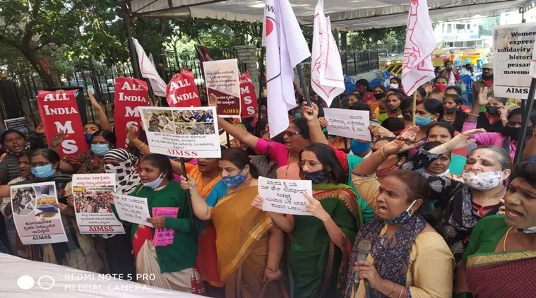 अखिल भारतीय महिला संस्कृत संघटनेच्या (एआयएमएसएस) भारतीय समाजवादी एकता केंद्राच्या महिला शाखेच्या वतीने (कम्युनिस्ट) मंगळवारी बेंगळूरमधील मौर्य सर्कलजवळ दिल्लीत आंदोलन करणाऱ्या शेतकर्यांच्या सहकार्याने निदर्शने केली आणि केंद्राने तीन शेतीविषयक कायदे रद्द करण्याची मागणी केली. दिल्लीतील ऐतिहासिक शेतकरी संघर्षाच्या समर्थनार्थ बेंगळूर येथे निषेध करण्याचा सलग सातवा दिवस आहे. केंद्र सरकारच्या मागण्या पूर्ण करेपर्यंत हे चालूच राहील, असे शहरातील निदर्शकांनी प्रसिद्धीस दिलेल्या निवेदनात म्हटले आहे.