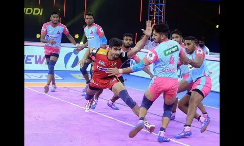 बेंगळूर बुल्स आणि जयपूर पिंक पँथर्स यांच्यातील सामन्यात बेंगळूर बुल्स संघातील प्रमुख रायडर्स भरत आणि पवन सेहरावत यांची कामगिरी दर्जेदार झाली. भरतने 15 गुण तर पवनने सुपर 10 गुण मिळविले. या स्पर्धेत प्ले ऑफ गटात स्थान मिळविण्यासाठी चालू असलेल्या शर्यतीमध्ये बेंगळूर बुल्सला हा विजय महत्त्वाचा ठरला आहे. बेंगळूर बुल्सने हा सामना 8 गुणांच्या फरकाने जिंकला. जयपूर संघाला प्ले ऑफ गटात स्थान मिळविण्यासाठी एकही गुण मिळाला नाही. रविवारच्या सामन्यात जयपूर संघातर्फे अर्जुन देसवालने सुपर 10 गुणांसह एकूण 16 गुण मिळविले. सामन्यातील 10 व्या मिनिटाला जयपूर पँथर्स संघाने आघाडी मिळविली होती. दरम्यान बेंगळूर संघातील बचावफळीत खेळणाऱया जयदीपने आपल्या संघाला पहिल्यांदा सर्वगडी बाद होण्यापासून वाचविले. 14 व्या मिनिटाला बेंगळूर बुल्सचे पहिल्यांदा सर्वगडी बाद झाल्याने जयपूरने पाच गुणांची आघाडी मिळविली पण त्यानंतर भरतच्या शानदार कामगिरीमुळे जयपूर पिंकचे सर्वगडी बाद झाले. दोन्ही संघ 18-18 असे बरोबरीत होते. सामन्याच्या मध्यंतराला बेंगळूरने जयपूरवर 22-19 अशा तीन गुणांची आघाडी मिळविली होती. सामन्याच्या उत्तरार्धात जयपूरचे दुसऱयांदा सर्वगडी बाद झाल्याने बेंगळूर संघाने 7 गुणांची आघाडी घेतली होती. अर्जुन देसवालने बेंगळूर बुल्सचे सर्वगडी बाद करून सुपर दहा गुण मिळविले. बेंगळूरच्या भरतने सुपर 10 गुण घेत जयपूर संघावर दडपण आणले. सामना संपण्यास 2 मिनिटे बाकी असताना बेंगळूर संघने आठ गुणांची आघाडी मिळविली होती. बेंगळूर संघाने ही आघाडी शेवटपर्यंत कायम राखत जयपूर पिंक पँथर्सचे आव्हान संपुष्टात आणले.