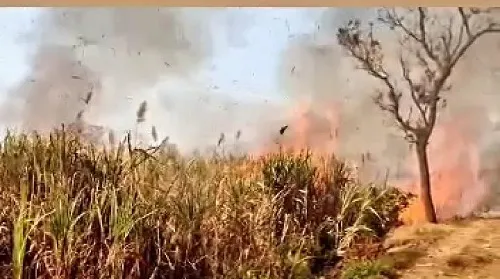 बेलवळे बुद्रुक ता. कागल येथील दुधगंगा नदीकाठ ते काळाबागदेव मंदिरापर्यंत सुमारे ५५ एकर क्षेत्रातील शेतकऱ्याच्या उसाला शॉर्टसर्किटने आग लागून सुमारे पाच लाखाचे नुकसान झाले आहे.