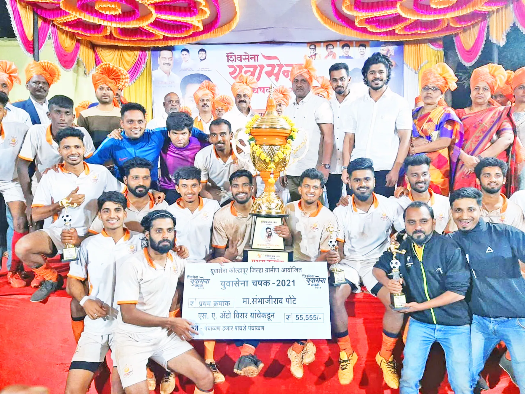 सामन्यानंतर प्रमुख पाहुण्यांच्या हस्ते विजेत्या दादा फुटबॉल क्लब बेळगाव संघाला 55 हजार रोख, आकर्षक चषक, तर उपविजेत्या संघाला