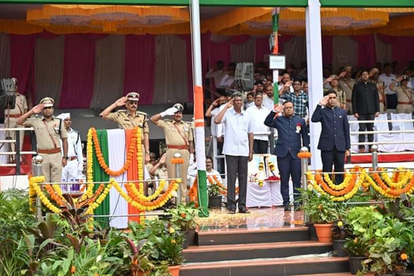 जिल्हा प्रशासनाच्यावतीने स्वातंत्र्यदिन उत्साहात साजरा करण्यात आला. जिल्हा क्रीडांगणावर पालकमंत्री सतीश जारकीहोळी यांच्या हस्ते ध्वजारोहण करण्यात आले. यावेळी आकर्षक पथसंचलन झाले. ध्वजारोहणानंतर बोलताना पालकमंत्र्यांनी बेळगाव तालुक्याचे विभाजन करून नवा तालुका करण्याचा निर्णय घेण्यात आला आहे. लवकरच यासंबंधी अधिकृत घोषणा होणार आहे. बेळगाव शहर व जिल्ह्याच्या विकासासाठी सरकार कटिबद्ध असल्याचे त्यांनी सांगितले.