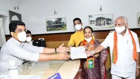 कर्नाटकचे मुख्यमंत्री बी. एस. येडियुरप्पा आणि भाजपा प्रदेशाध्यक्ष नलिनीकुमार कटील यांच्या उपस्थितीत मंगला सुरेश अंगडी यांनी बेळगाव लोकसभा मतदारसंघातील आगामी पोटनिवडणुकीसाठी उमेदवारी अर्ज दाखल केला आहे.