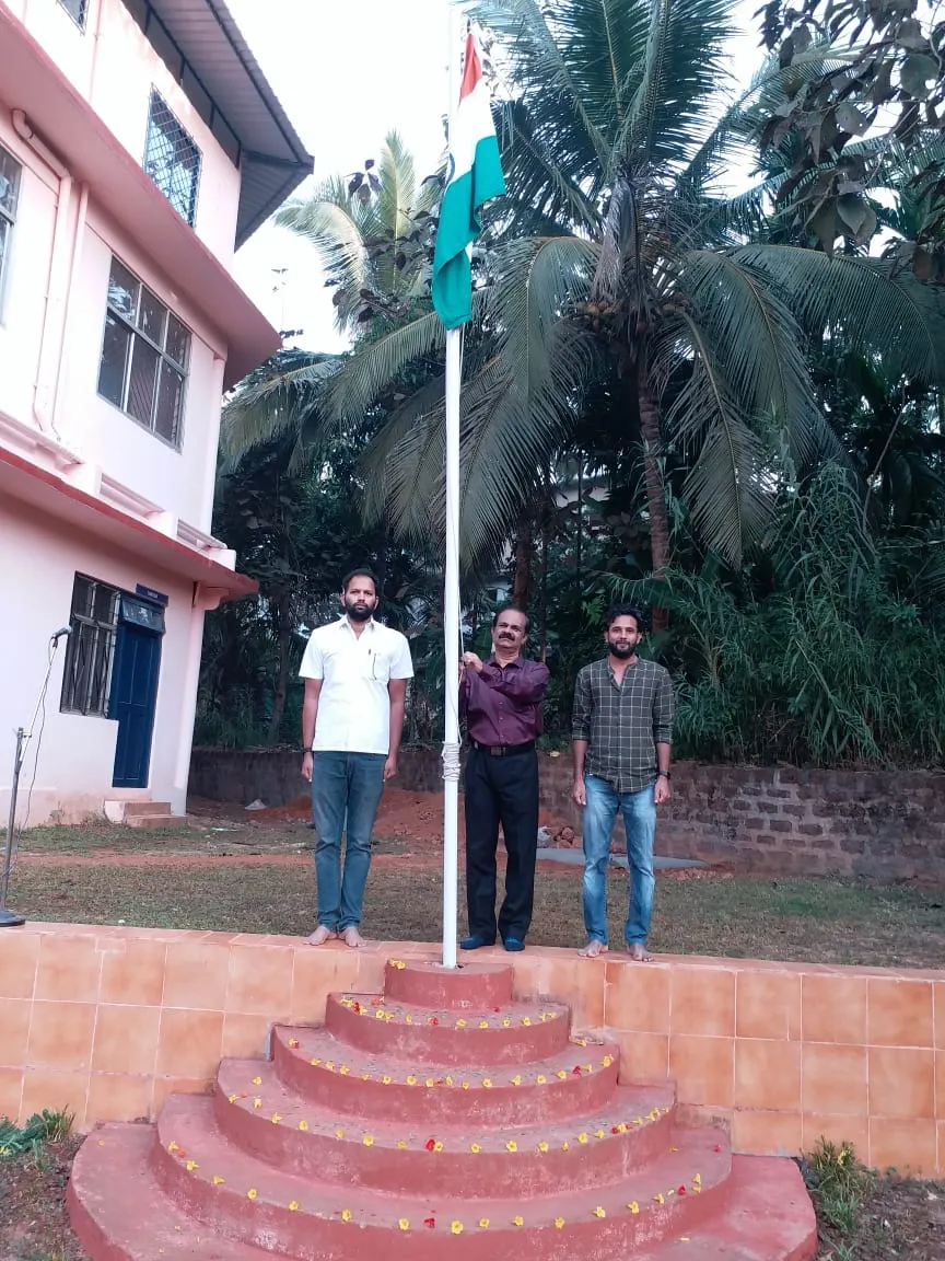 प्राचार्य सुब्रमण्यम भट यांच्याहस्ते ध्वजारोहण करण्यात आले. यावेळी प्राध्यापक यशोधन खराडे, कुणाल बोरकर, श्रीपाद मराठे उपस्थित होते. प्राचार्य भट म्हणाले की, देशाची राज्यघटना 26 जानेवारी 1950 रोजी अंमलात आली त्यानंतर हा दिवस प्रजासत्तात दिन म्हणून साजरा करण्यात येतो. यंदा भारत स्वातंत्र्याचा अमृतमहोत्सव साजरा करीत असून युवकांनी जबाबदारी स्वीकारून देशाभिनान बाळगून स्वातंत्र्य जपण्याचे कर्तव्य पार पाडावे. अनेक वीरांनी आपल्या प्राणांची आहुती दिली, ज्यामुळे आपल्याला स्वातंत्र्य मिळाले, याची जाणीव कायम ठेवली पाहिजे, असे ते म्हणाले.