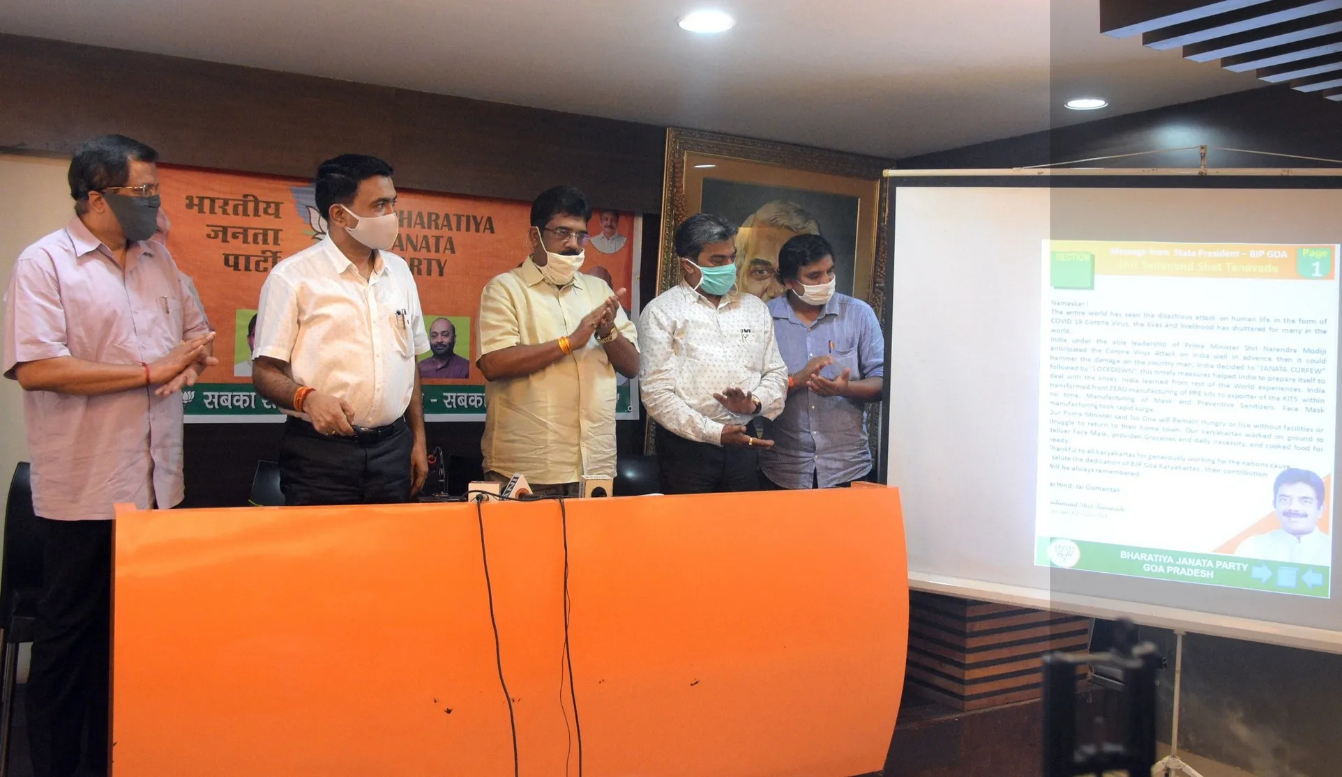 मार्च 25 ते 31 मे या लॉकडाऊनच्या काळात भाजपच्या कार्यकर्त्यानी देशभर लोकांची सेवा केली. आमच्या राज्यातील कार्यकर्त्यांनी देखील कानाकोपऱयापर्यंत ज्यांना मदतीची गरज होती त्यांना मदत केली. या कार्याचे संकलन हेतू या ई-पुस्तकाचे नियोजन केले आहे. केद्रातून या पुस्तकासाठी आवाहन करण्यात आले होते. त्यामुळे सिध्दार्थ कुंक्कळकर यांच्या अध्यक्षतेखालील समीतीने सदर ई-पुस्तक तयार केले आहे. असे सदानंद शेट तानावडे यांनी यावेळी सांगितले. आमच्या कार्यकर्त्यानी राज्यात या महामारीच्या काळात 1 लाख, 12 हजार, 765 लोकांना शिजवलेले अन्न, 4 लाख, 34 हजार, 780 लोकांना मोफत रेशन, 3 लाख 15 हजार लोकांना मोफत मास्क, व 2 लाख 15 हजार लोकांना सॅनिटायझर बॉटल्स वाटण्यात आल्या. असे तानावडे यांनी पुढे सांगितले.