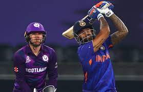 स्कॉटलंडविरुद्ध विजयासाठी 86 धावांची आवश्यकता असताना भारतीय सलामीवीरांनी या स्पर्धेतील सर्वात जलद अर्धशतक साजरे केले. राहुल व रोहित यांनी जवळपास प्रत्येक चेंडूवर तुटून पडत 5 षटकातच 70 धावांची आतषबाजी केली. ब्रॅडली व्हीलने रोहितला 30 धावांवर बाद केले. मात्र, तोवर भारत विजयाच्या समीप पोहोचला होता. केएल राहुल दुसऱया गडय़ाच्या रुपाने बाद झाल्यानंतर विराट कोहली व सुर्यकुमार यादव यांनी विजयाचे सोपस्कार पूर्ण केले.