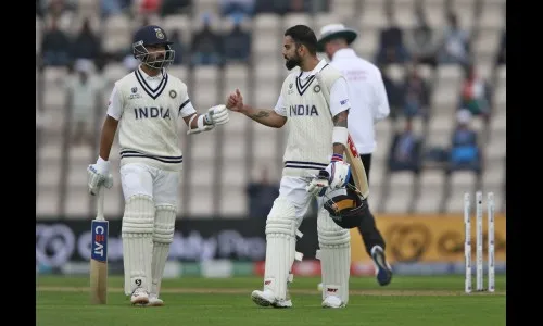 दुसरीकडे, कसोटी स्पेशालिस्ट चेतेश्वर पुजाराने एकवेळ खाते उघडण्यासाठी 36 चेंडू घेतले होते. नंतर वॅग्नरच्या गोलंदाजीवर कटच्या फटक्यावर चेंडू सीमापार गेल्यानंतर त्याचे खाते उघडले गेले. तत्पूर्वी, रोहित शर्मा (68 चेंडूत 34) व शुभमन गिल (64 चेंडूत 28) यांनी प्रारंभी समयोचित फलंदाजी साकारली असली तरी नंतर चेंडूला छेडण्याच्या प्रयत्नात आपली विकेट गमावली.