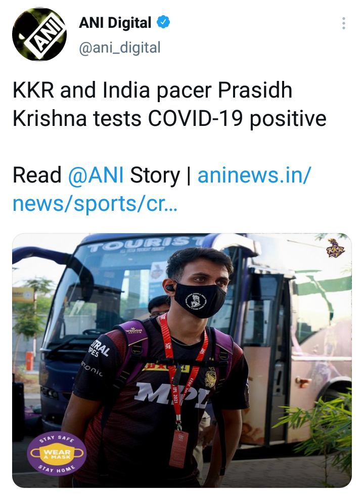प्रसिद्ध कृष्णा यंदा आयपीएलमध्ये कोलकाता नाईट रायडर्सकडे होता. या टीममधील 3 जणांना यापूर्वीच कोरोनाची बाधा झाली आहे. यापूर्वी या टीममधील न्यूझीलंडचा खेळाडू टीम सिफर्ट, संदीप वॉरियर आणि वरून चक्रवर्ती यांना कोरोनाची लागण झाली आहे. त्यामुळे कृष्णा हा चौथा खेळाडू ठरला आहे.